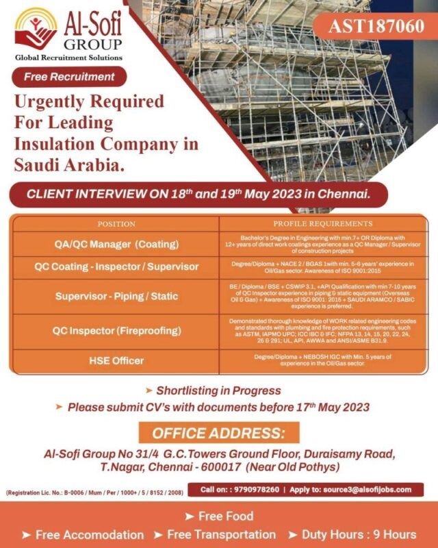 Insulation Company - Free recruitment to Saudi Arabia