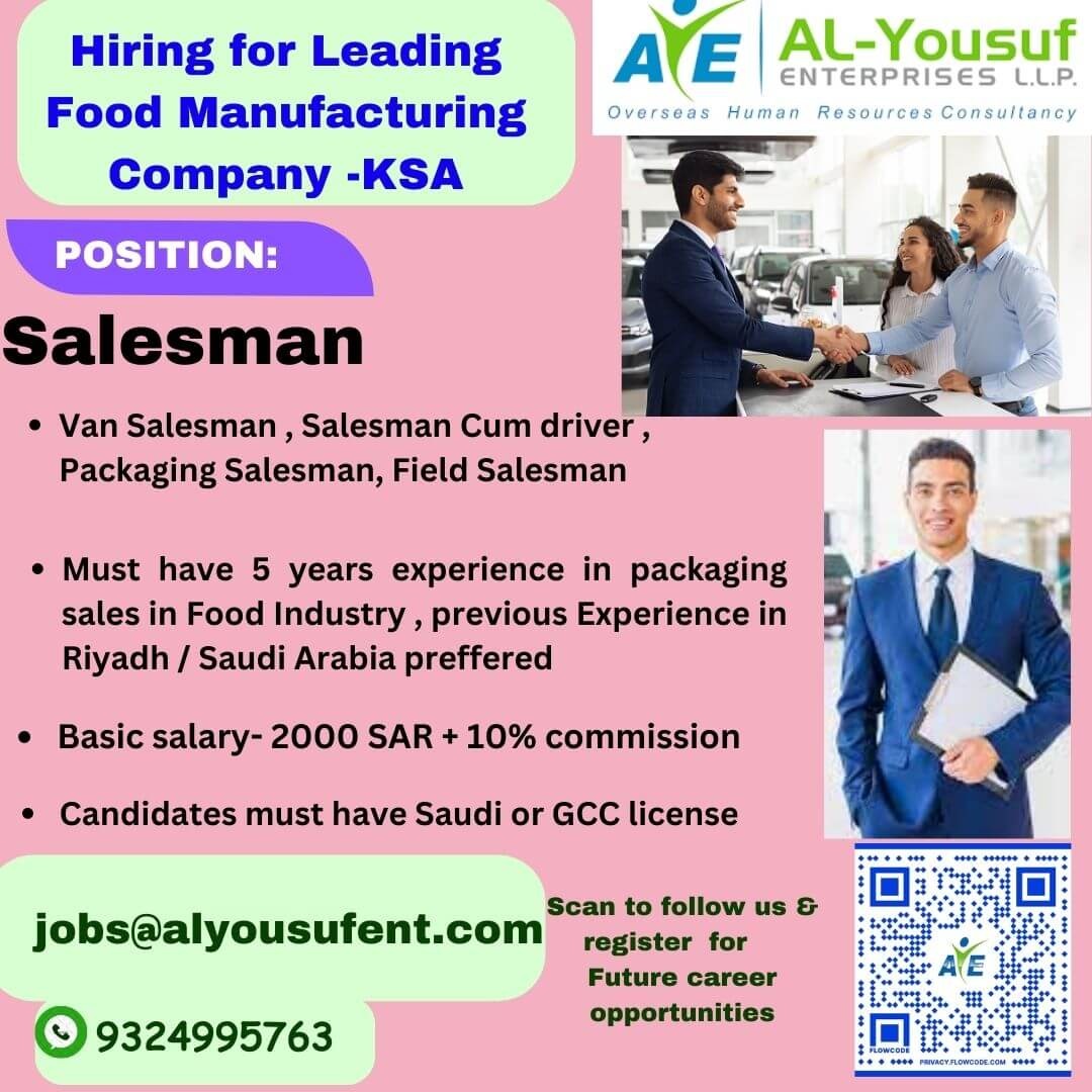 Salesman jobs in Saudi Arabia 2023 - Food Manufacturing Company
