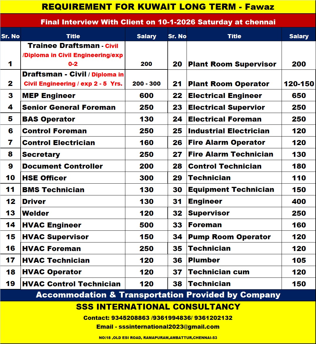 Disclaimer:- GCCWALKINS have no involvement in any recruitment process, This website just sharing job vacancies & interviews from various sources. Applicants are advised to research the bonafides of the prospective employer independently. We do NOT endorse any requests for money payments and strictly advice against sharing personal or bank related information. If you suspect any fraud or malpractice, email us at gccwalkins@gmail.com