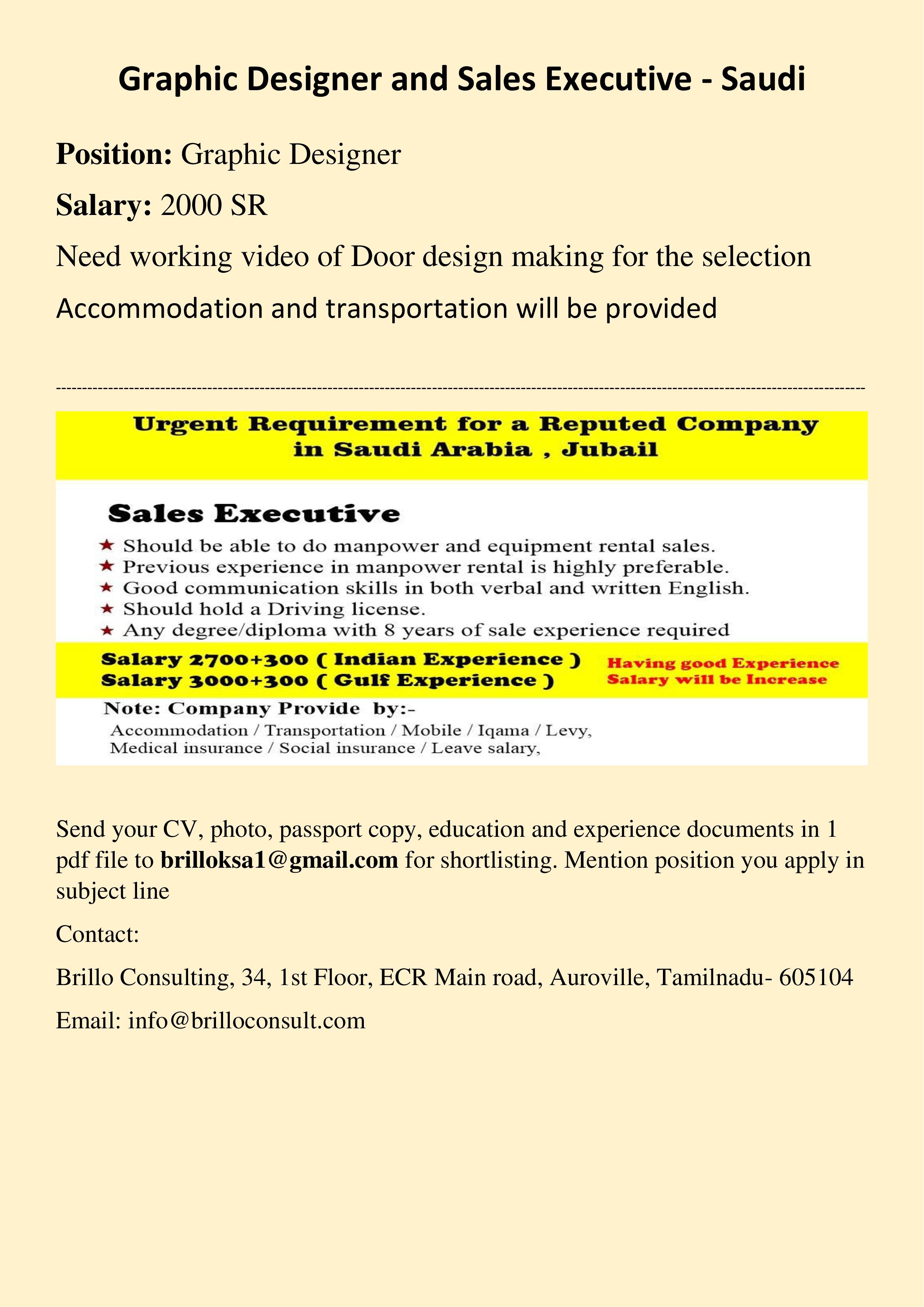 Graphic Designer & Sales executive jobs in Saudi Arabia