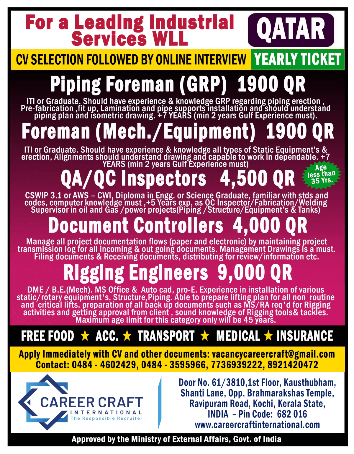Disclaimer:- GCCWALKINS have no involvement in any recruitment process, This website just sharing job vacancies & interviews from various sources. Applicants are advised to research the bonafides of the prospective employer independently. We do NOT endorse any requests for money payments and strictly advice against sharing personal or bank related information. If you suspect any fraud or malpractice, email us at gccwalkins@gmail.com