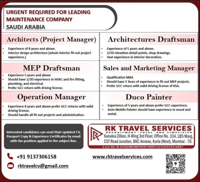 Wanted for Saudi Arabia - Maintenance Company
