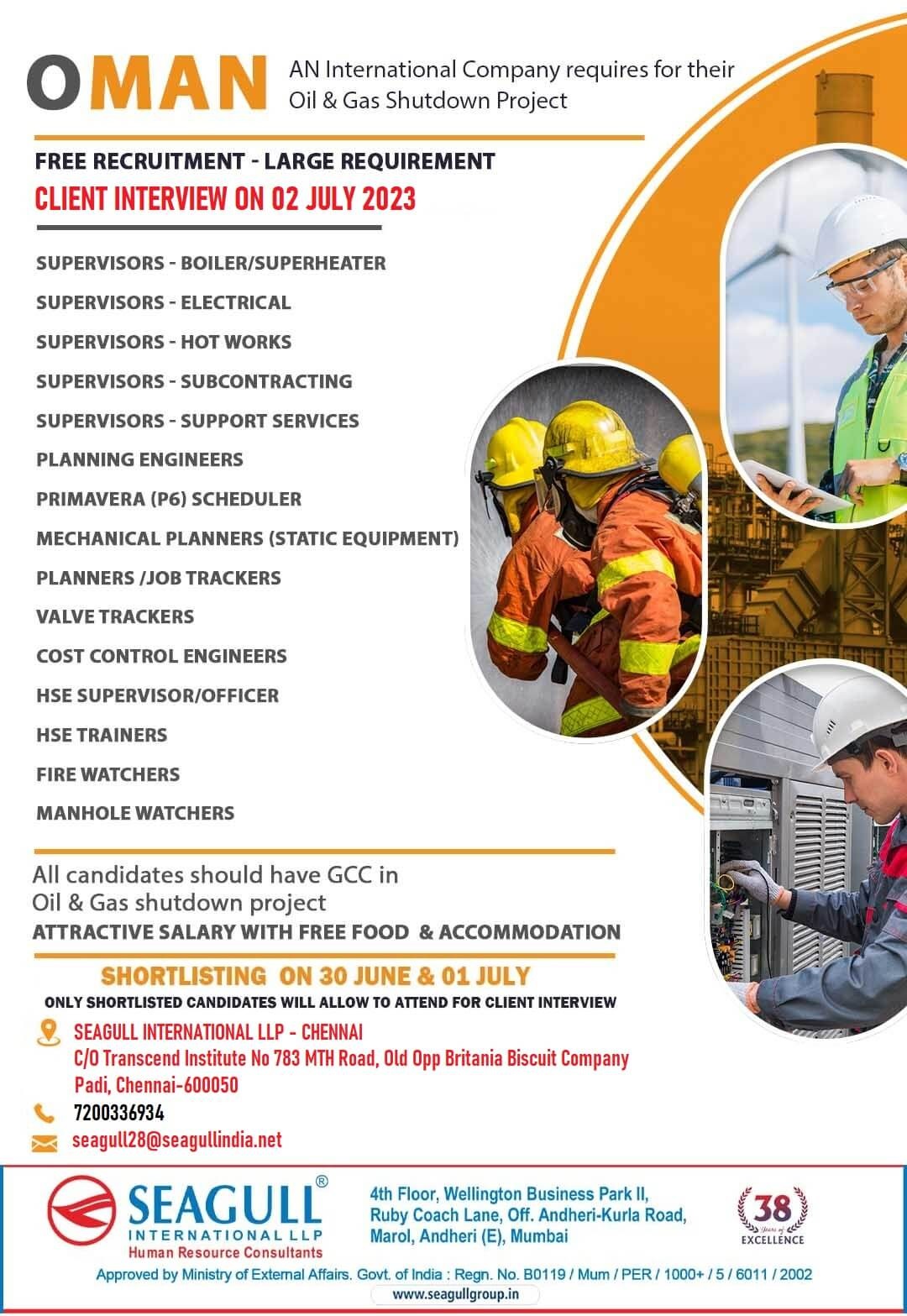 Oil & Gas Shutdown Project - Free recruitment to Oman