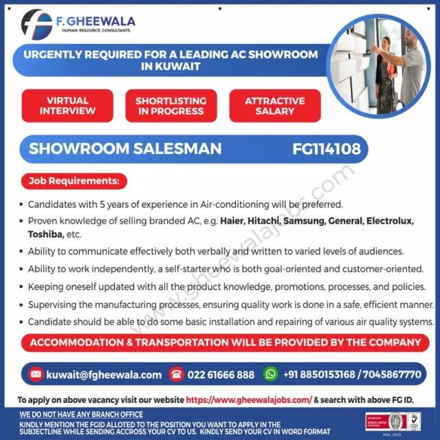 AC Showroom salesman Jobs in Kuwait - Urgently required
