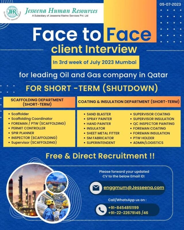 Disclaimer:- GCCWALKINS have no involvement in any recruitment process, This website just sharing job vacancies & interviews from various sources. Applicants are advised to research the bonafides of the prospective employer independently. We do NOT endorse any requests for money payments and strictly advice against sharing personal or bank related information. If you suspect any fraud or malpractice, email us at gccwalkins@gmail.com