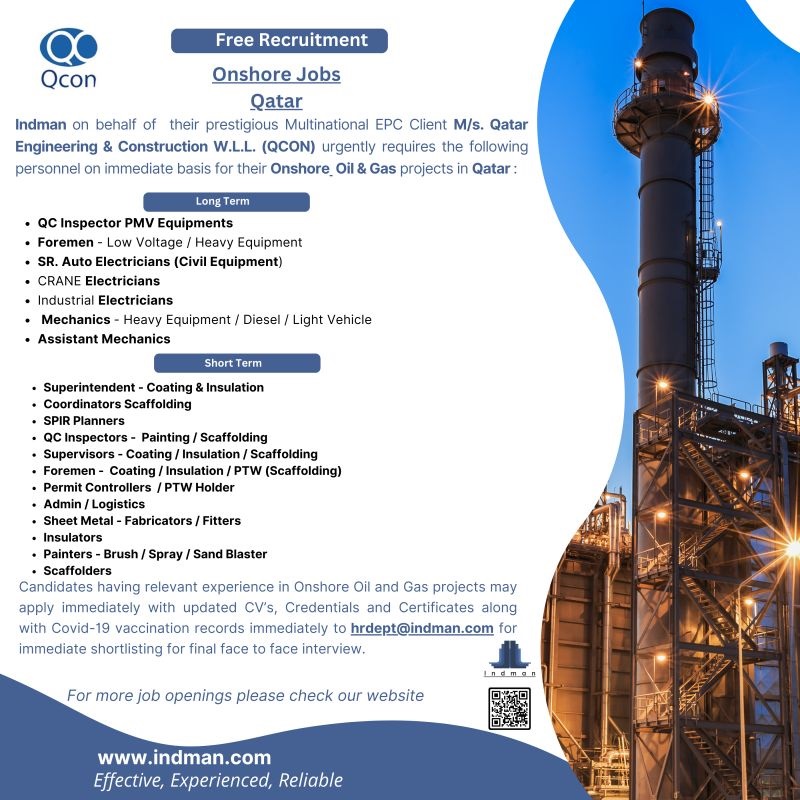 Candidates having relevant experience in Onshore Oil and Gas projects
