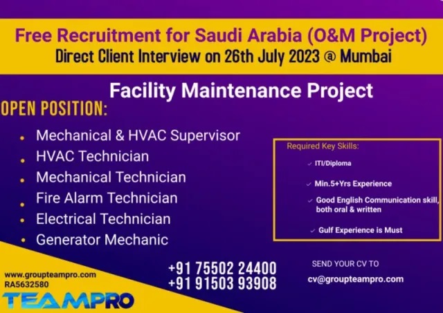 Email: cv@groupteampro.com / Contacts : 7550224400, 9150393908