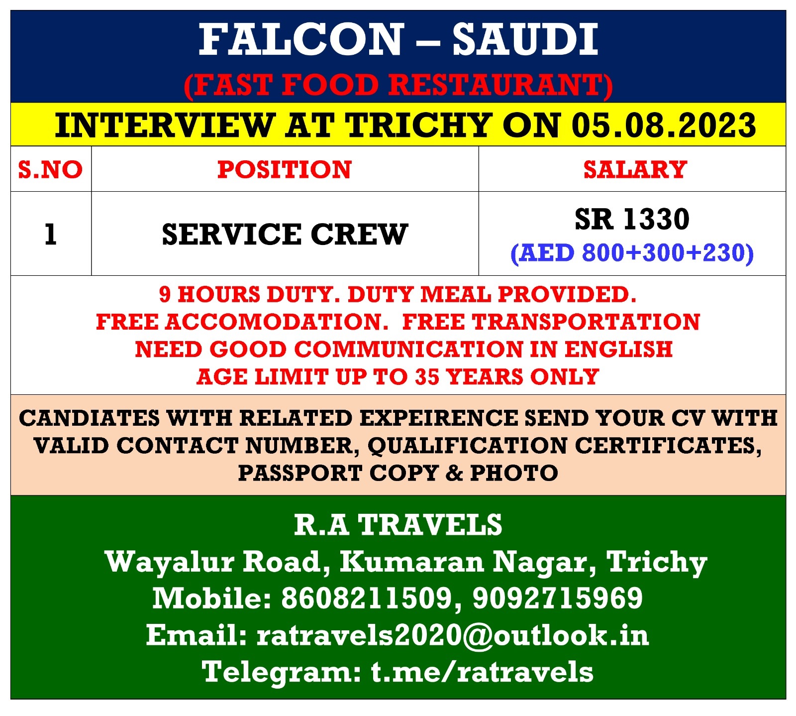 Service Crew | 1330 SAR |