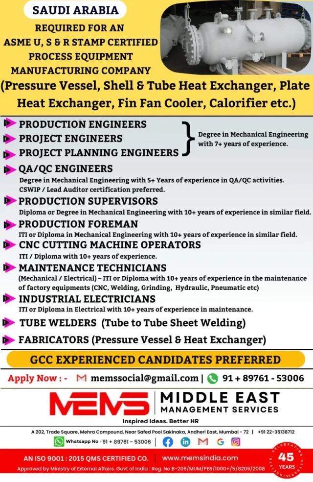 Manufacturing Company - Hiring for Saudi Arabia