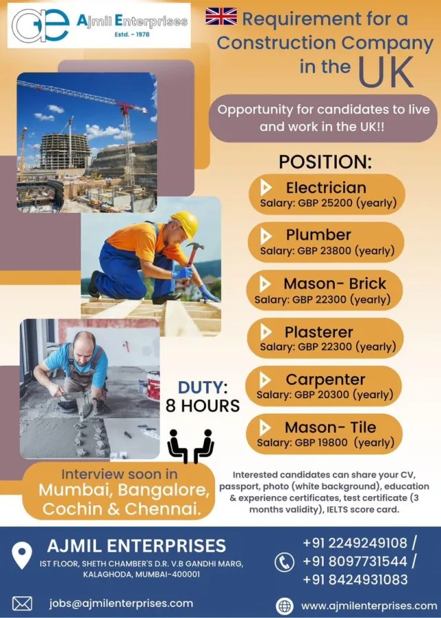 Email: jobs@ajmilenterprises.com / Contacts : 022 49249108, 8097731544, 8424931083