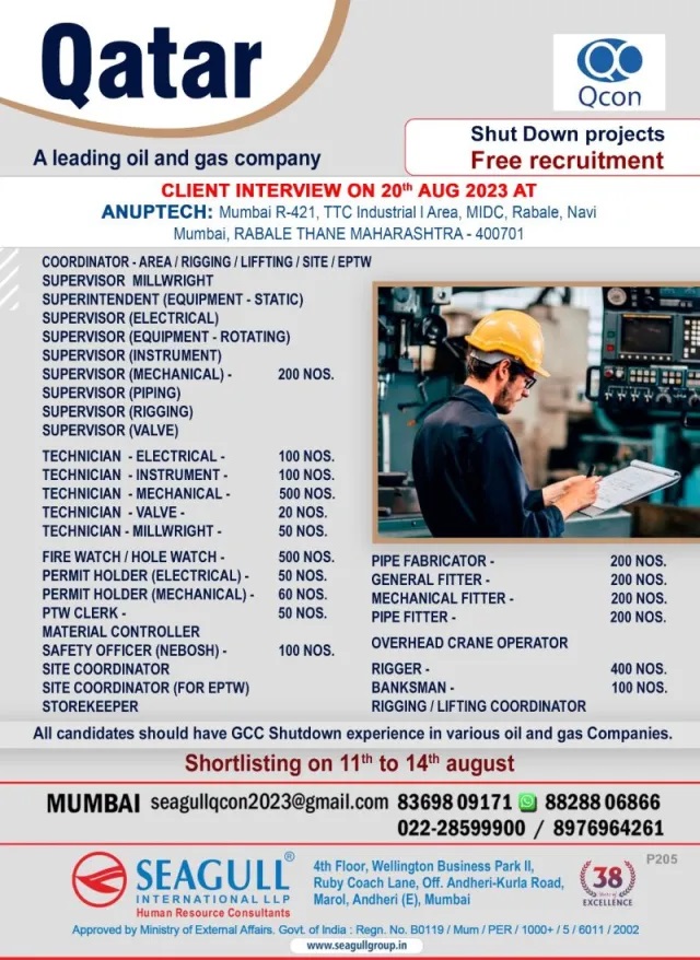 All Candidates should have GCC Shutdown experience in various Oil and Gas Companies
