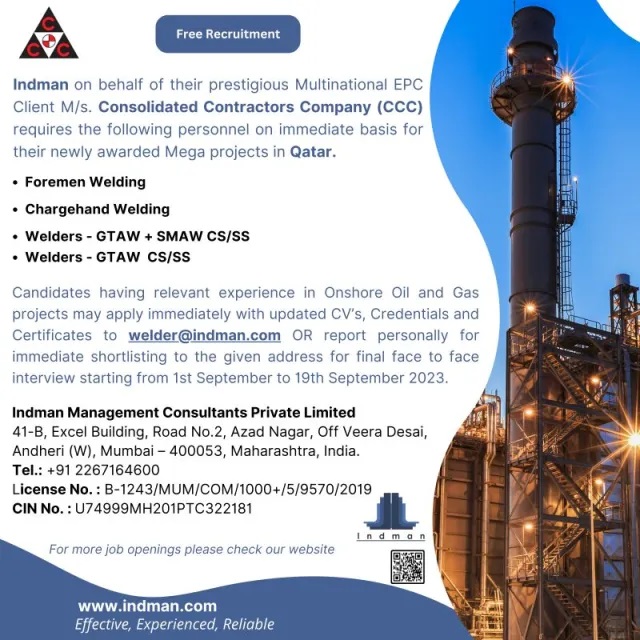 Email : welder@indman.com / Contacts : 022 - 67164600