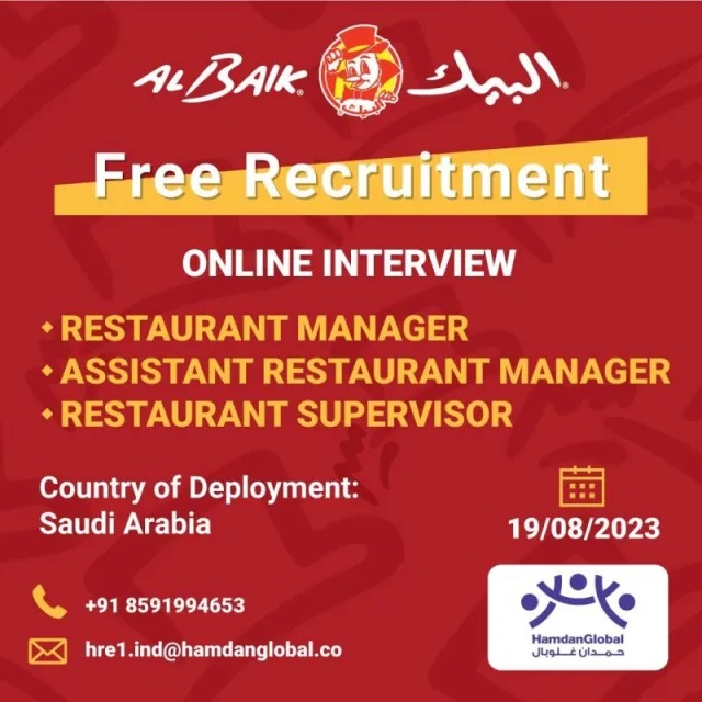 Free recruitment to Al Baik Saudi Arabia