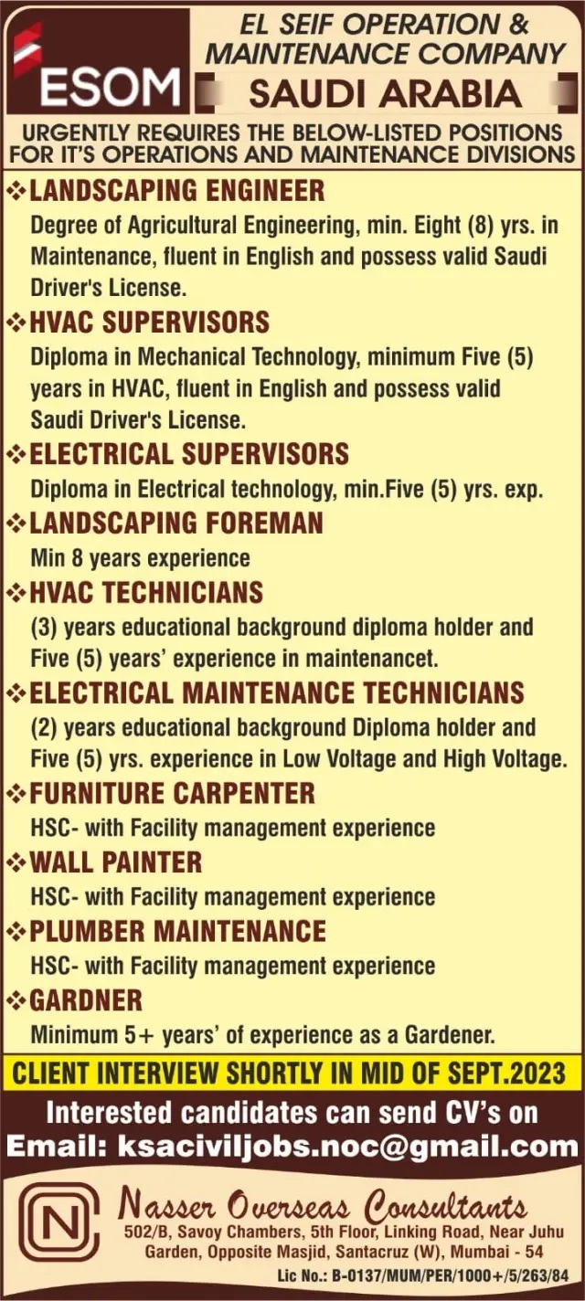 Esom Saudi Arabia jobs - Operation & Maintenance Company