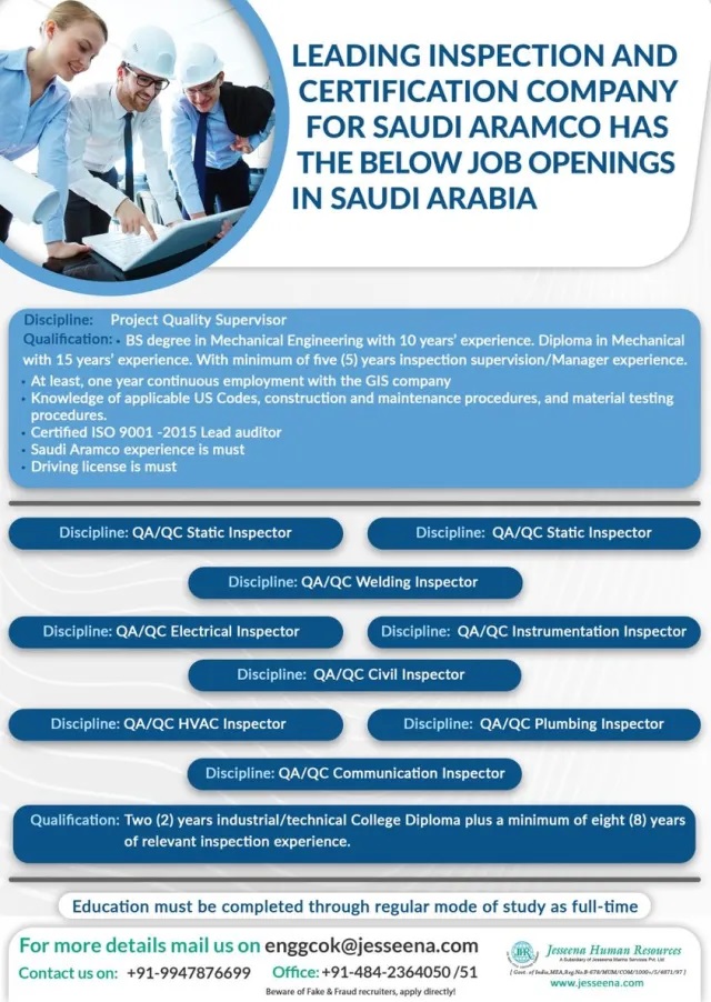 Inspection & Certification Company - Hiring for Saudi Arabia