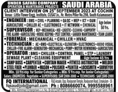 Email : fqsaudijob@gmail.com / Contacts : 8086660074, 9995588961