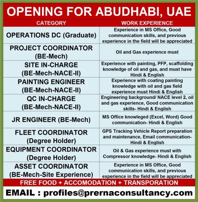 Wanted for Abu Dhabi - Oil & Gas Industry
