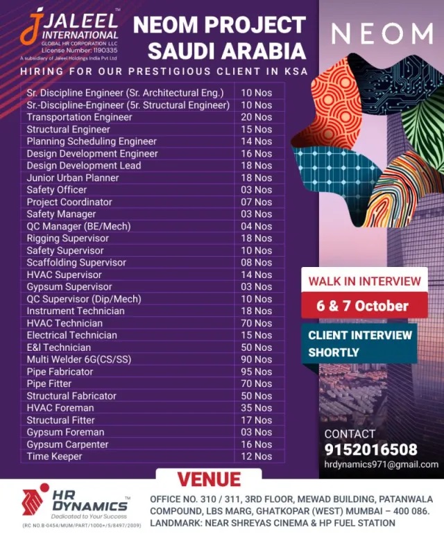 Walk-in-interview on 06th & 07th October 2023 at HR Dynamics, Office No : 310/311, 3rd Floor, Mewad Building, Patanwala Compound, LBS Marg, Ghatkopar (West) Mumbai - 400086, Landmark : Near Shreyas Cinema & HP Fuel Station.