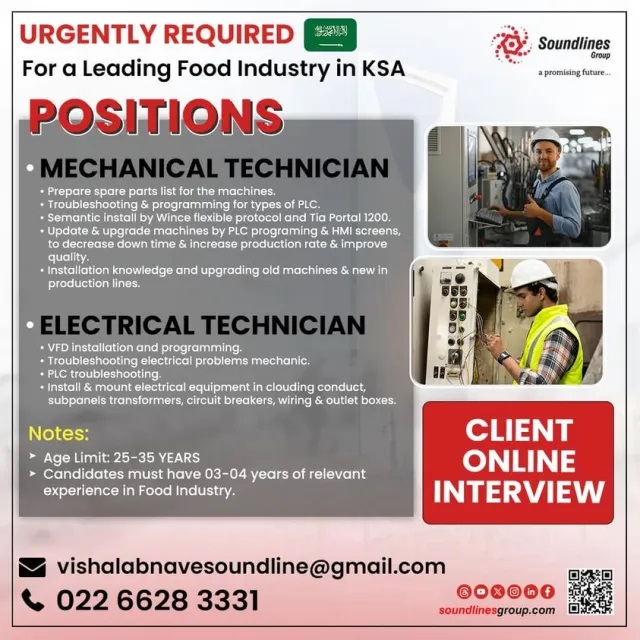 Wanted for KSA - Food Industry