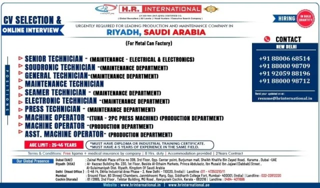 Metal Can Factory - Hiring for KSA