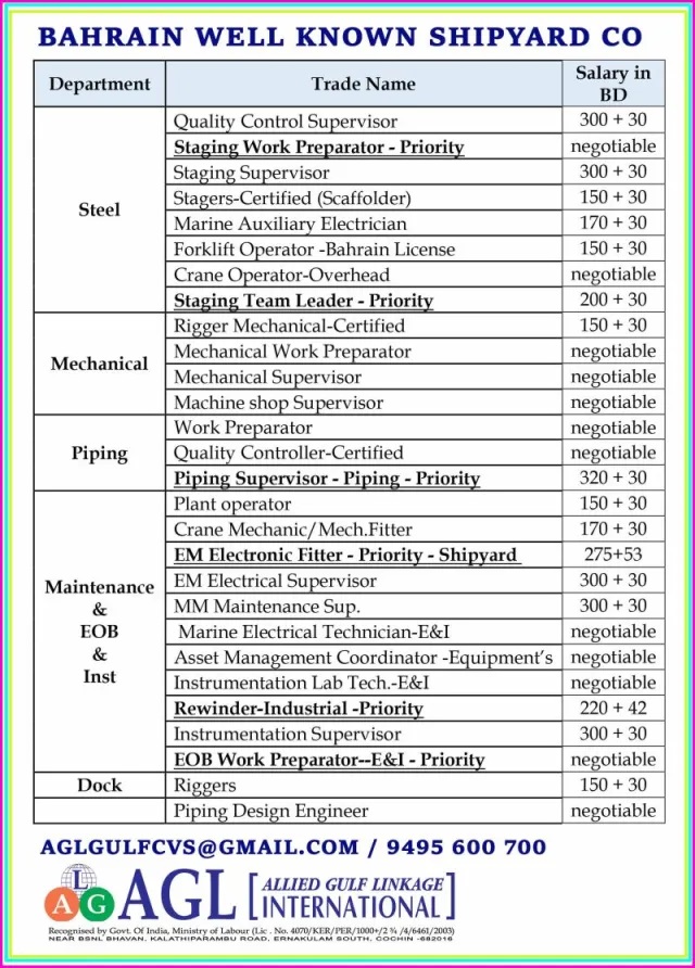 | EM Electronic Fitter-Priority Shipyard | 328 BHD | |