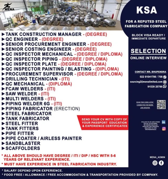 All Above Should Have Degree / ITI / Diploma / HSC With 5 to 6 yrs of Relevent Experience