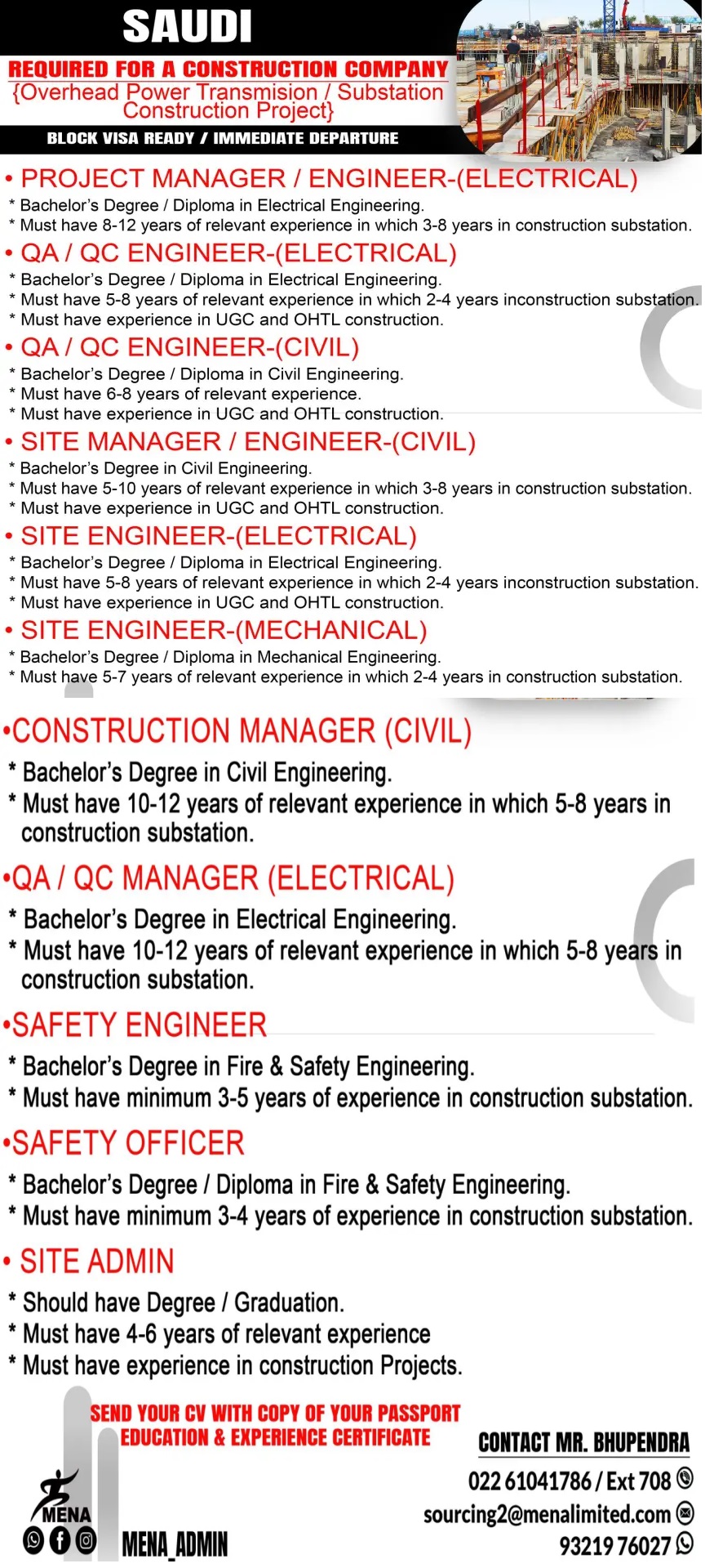 Wanted for Saudi - Overhead Power Transmission & Substation Project