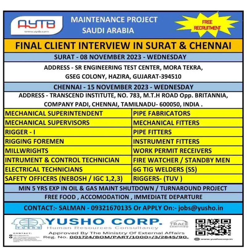 Email : jobs@yusho.in / Contacts : Salman 9321670135