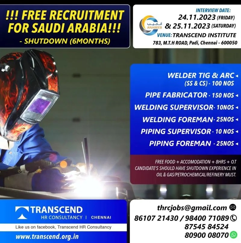 Walk-in-interview on 24th & 25th November 2023 at Chennai : Transcend Institute, No: 783, MTH Road, Padi, Opp: Brittania Factory, Chennai.