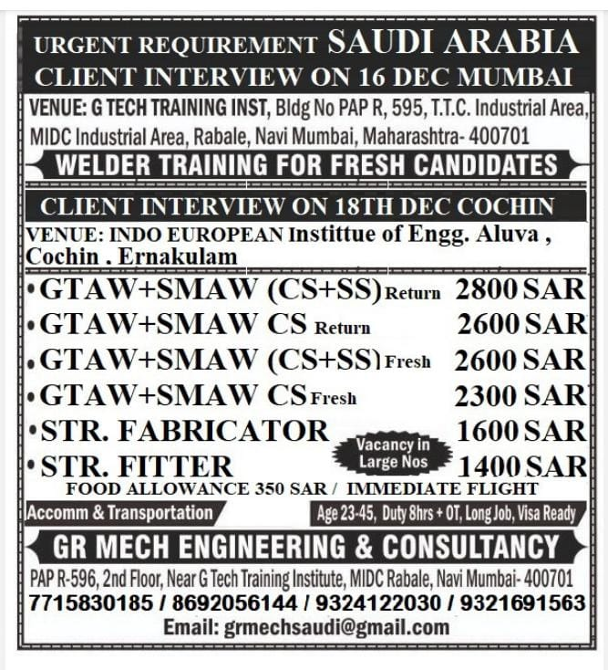 Welder Jobs in Saudi Arabia - Freshers also welcome