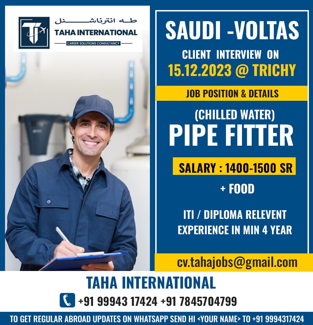 Voltas Saudi Arabia careers - Pipe fitter (Chiller Water)