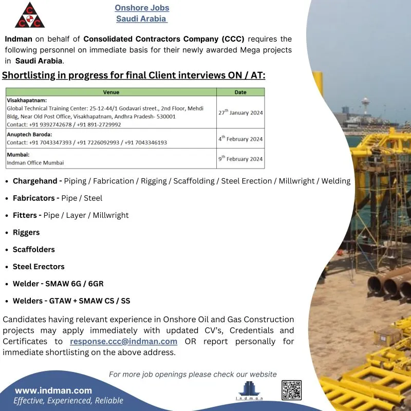 CCC company Saudi Arabia jobs 2024 - Walk in Interview