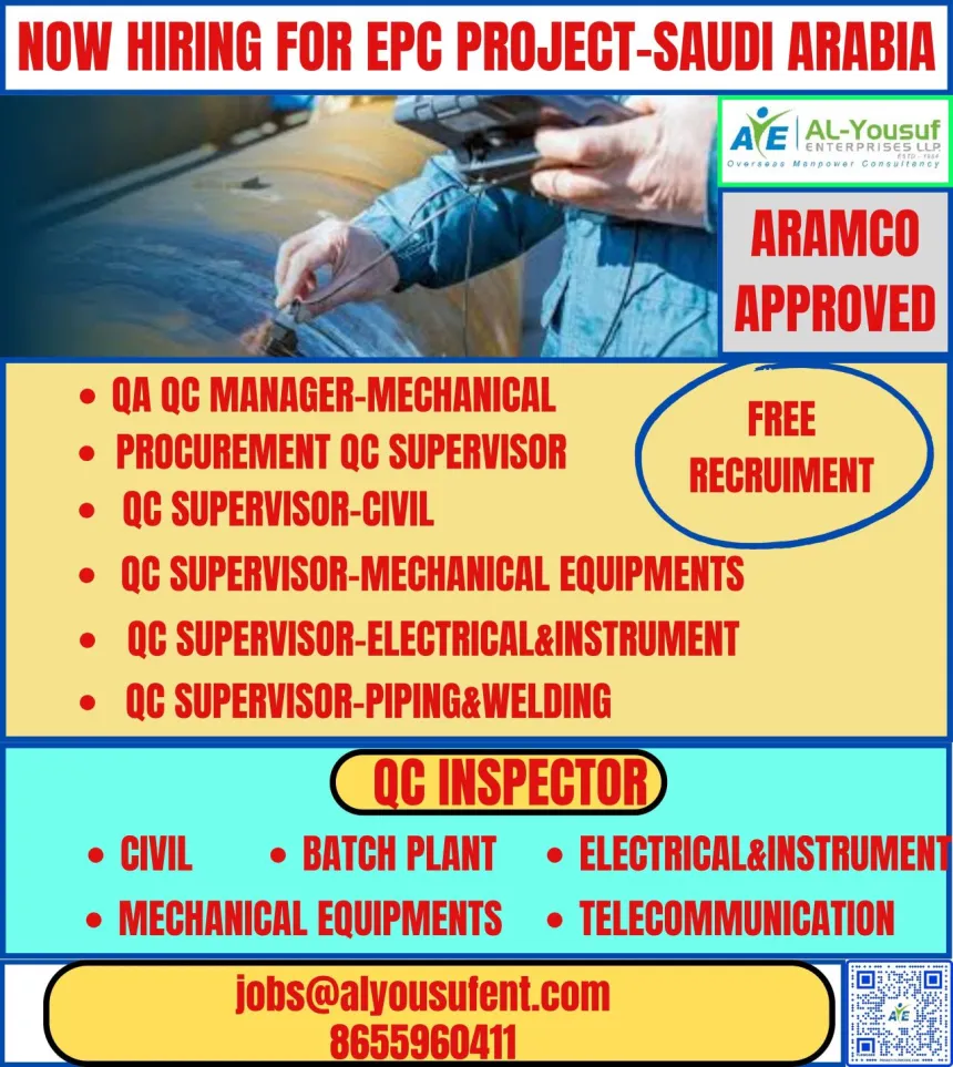 QC Inspector - Civil/Batch plant/Electrical & Instrument/ Mechanical Equipments/ Telecommuncation |