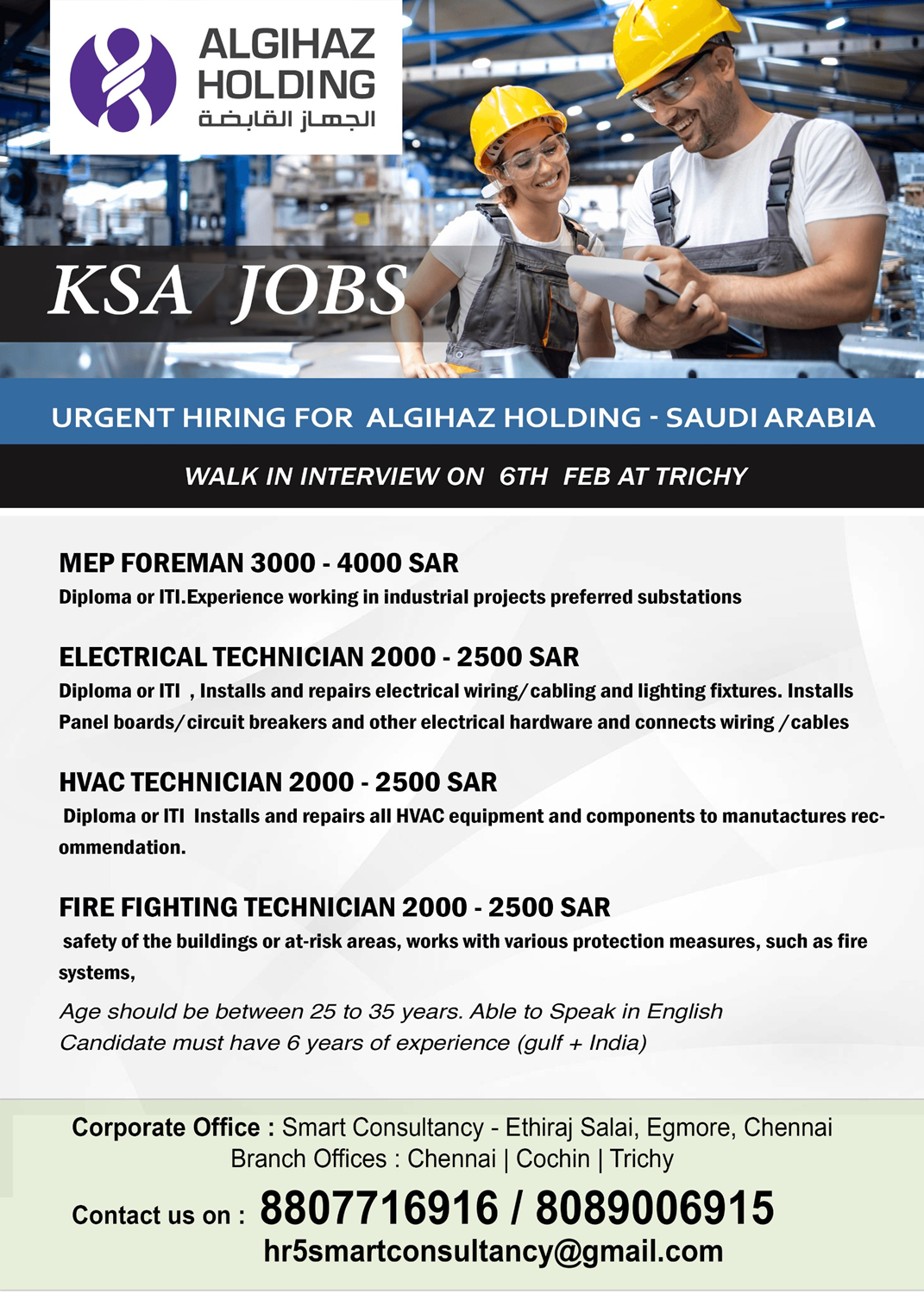 Disclaimer:- GCCWALKINS have no involvement in any recruitment process, This website just sharing job vacancies & interviews from various sources. Applicants are advised to research the bonafides of the prospective employer independently. We do NOT endorse any requests for money payments and strictly advice against sharing personal or bank related information. If you suspect any fraud or malpractice, email us at gccwalkins@gmail.com