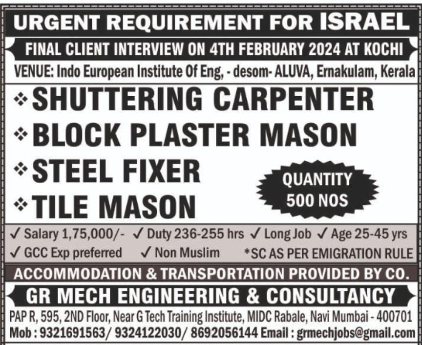 Email : grmechjobs@gmail.com / Contacts : 9321691563, 9324122030, 8692056144