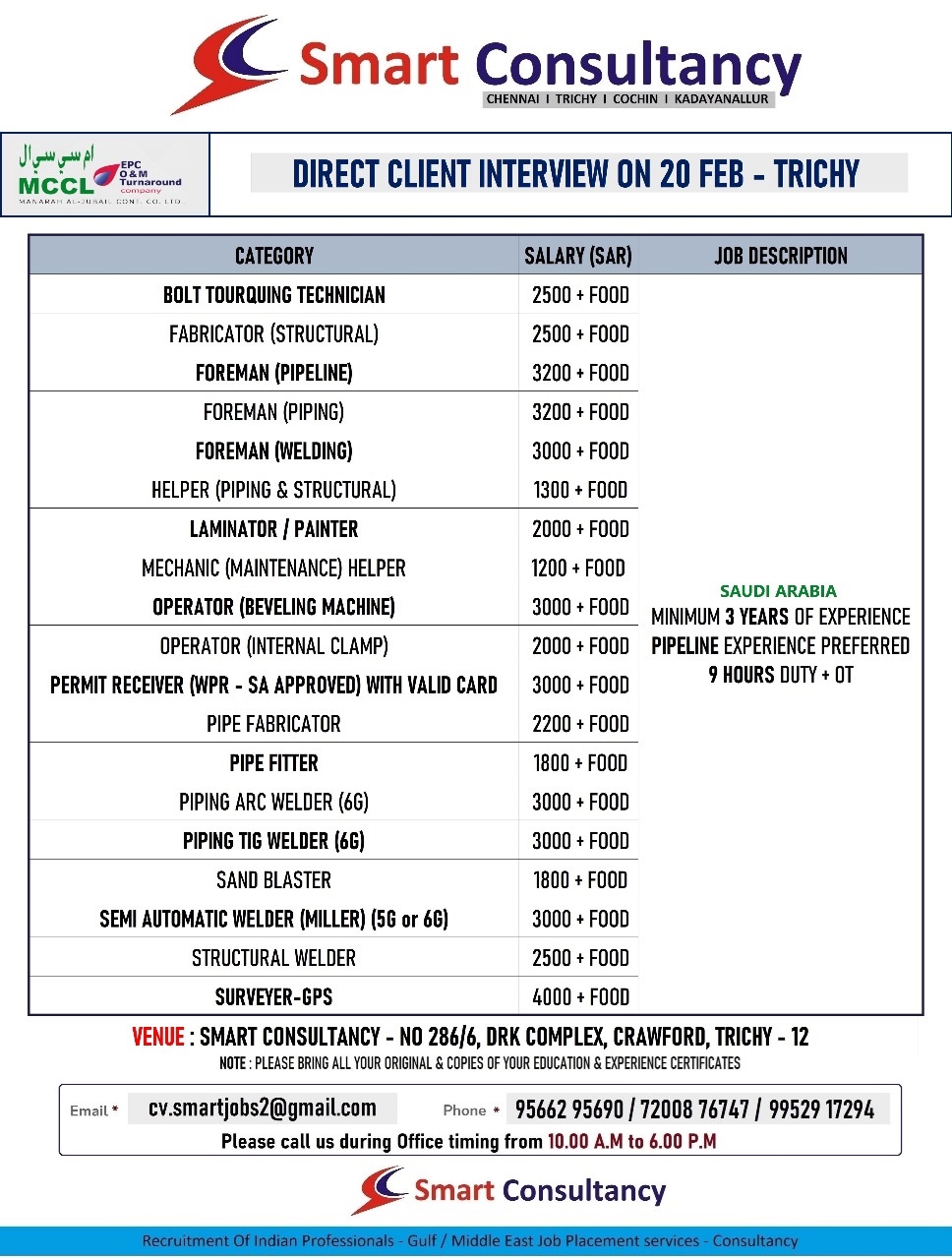 Mccl manarah al jubail cont company job vacancies - Hiring for KSA
