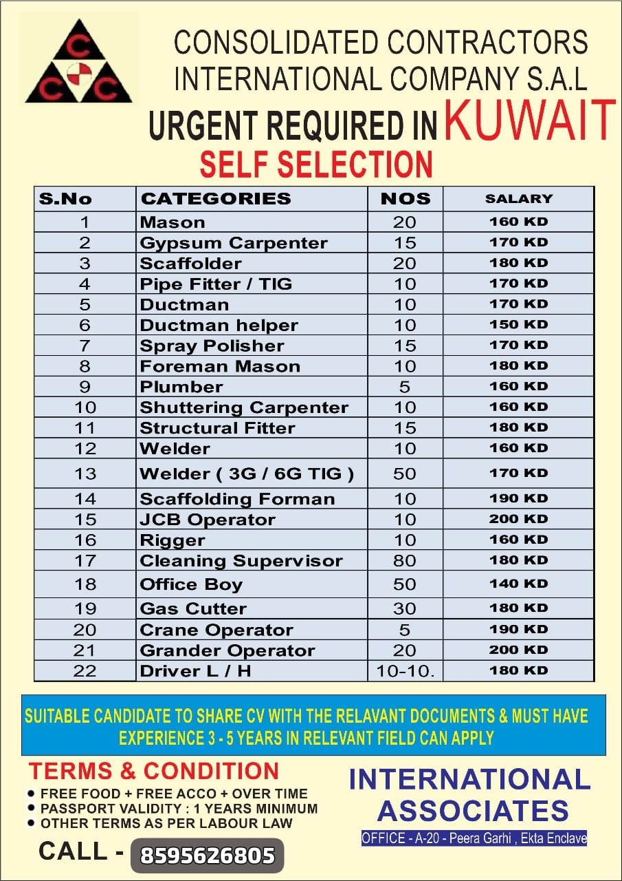 CCC company Kuwait vacancy 2024 - Urgently required