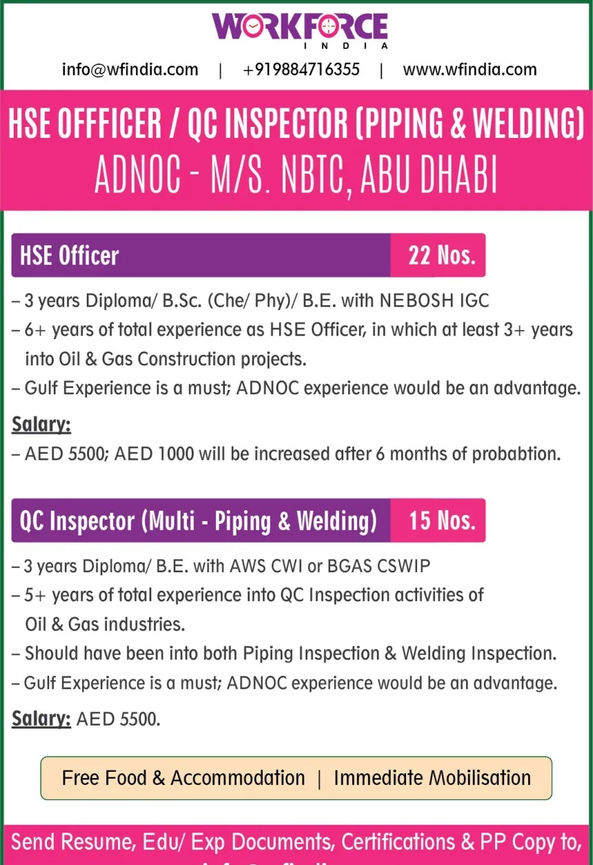 QC Inspector (Multi Piping & Welding) | 15 | 5500 AED |