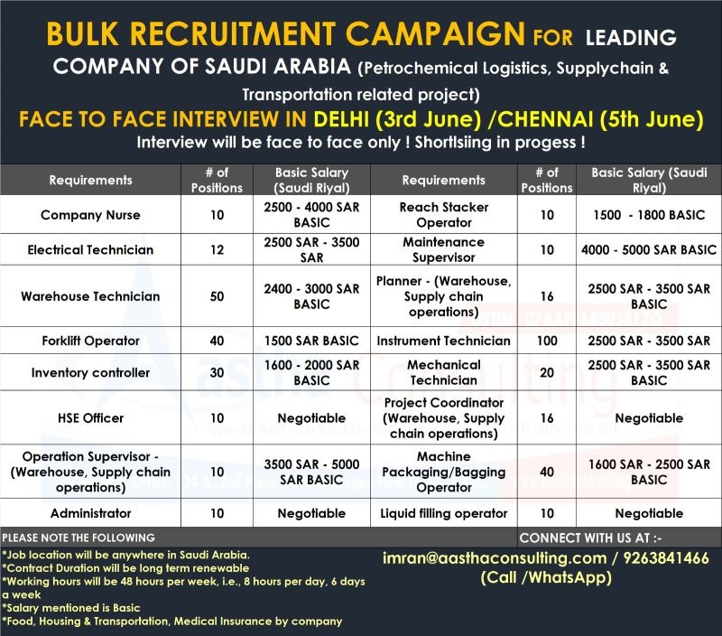 Email : imran@aasthaconsulting.com / Contacts : 9263841466
