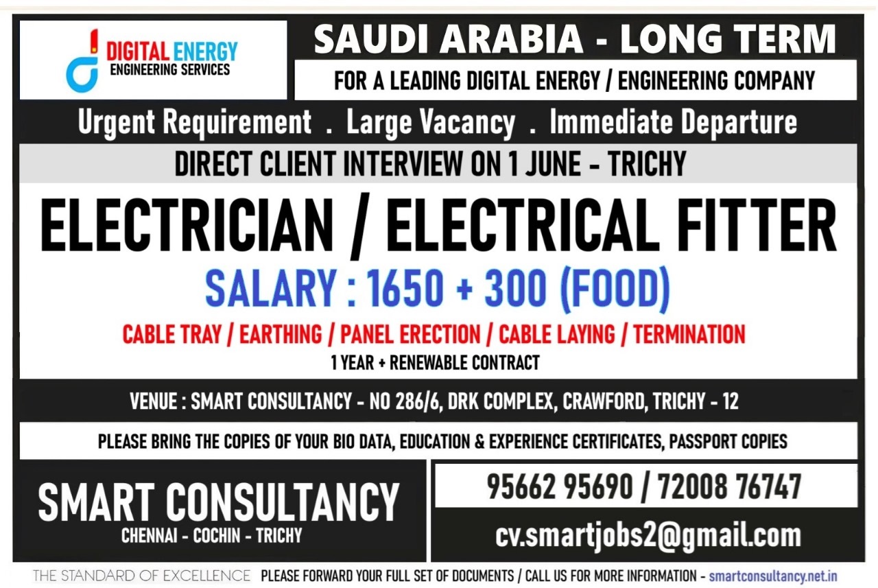 Electrician/Electrical Fitters job in KSA - Digital Energy Engineering Services