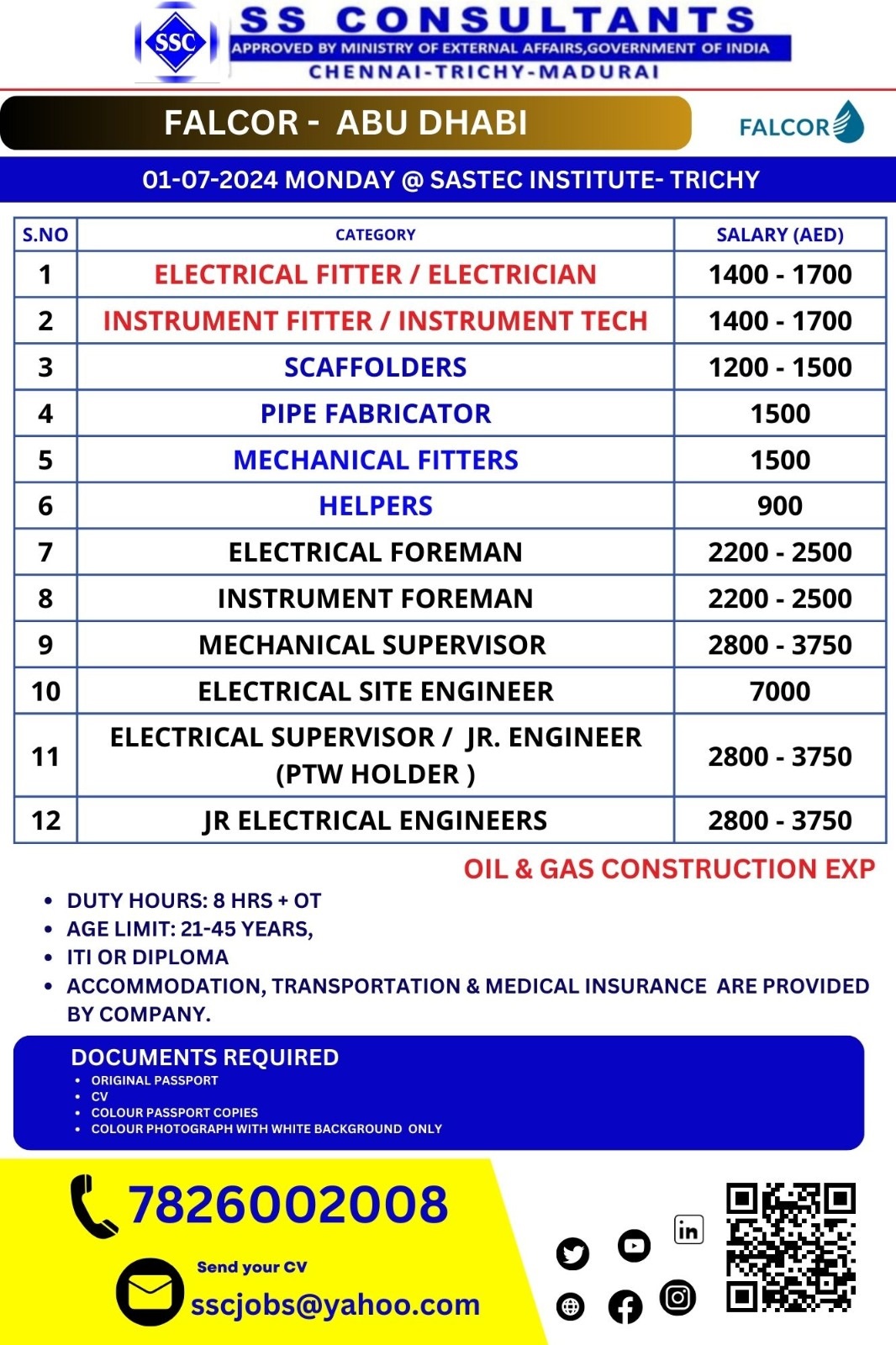 | Electrical Supervisor/JR. Engineer (PTW Holder) | 3750 AED | |