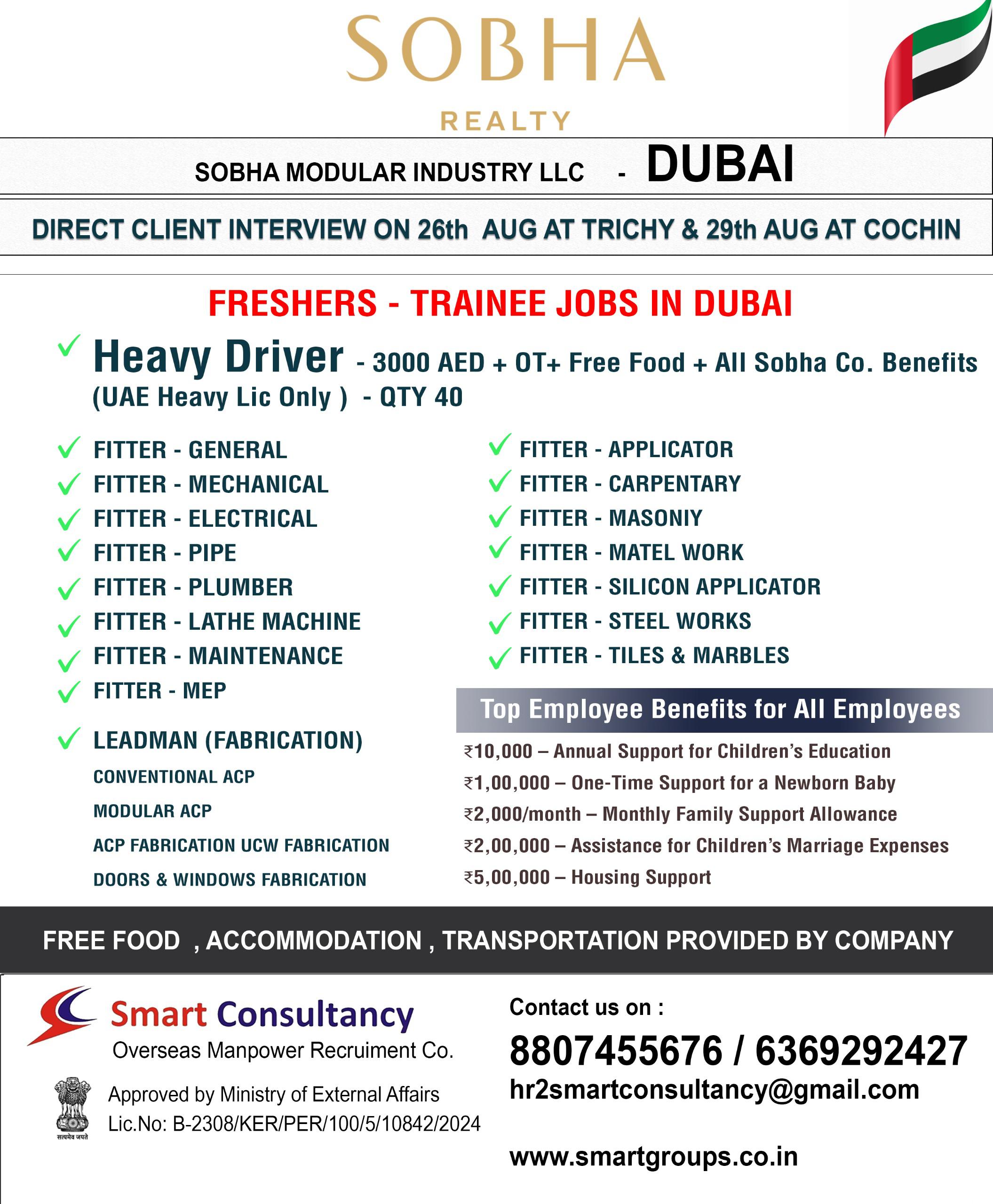 Urgent Jobs in Dubai for freshers - Sobha Reality