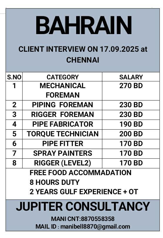 Bahrain job Vacancy 2025 - Client Interview
