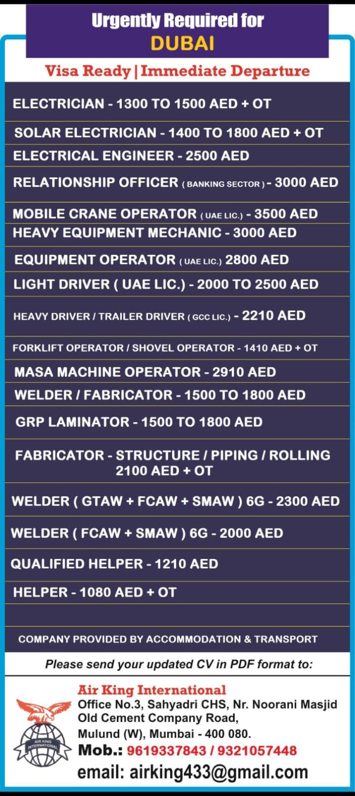Urgent Jobs in Dubai for Indian - Ready Visa