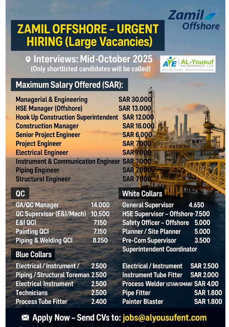 Zamil Offshore Vacancy 2025 Saudi Arabia - Large Recruitment