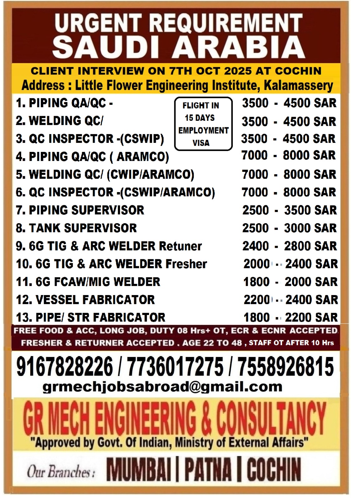 Send CV to: grmechjobsabroad@gmail.com