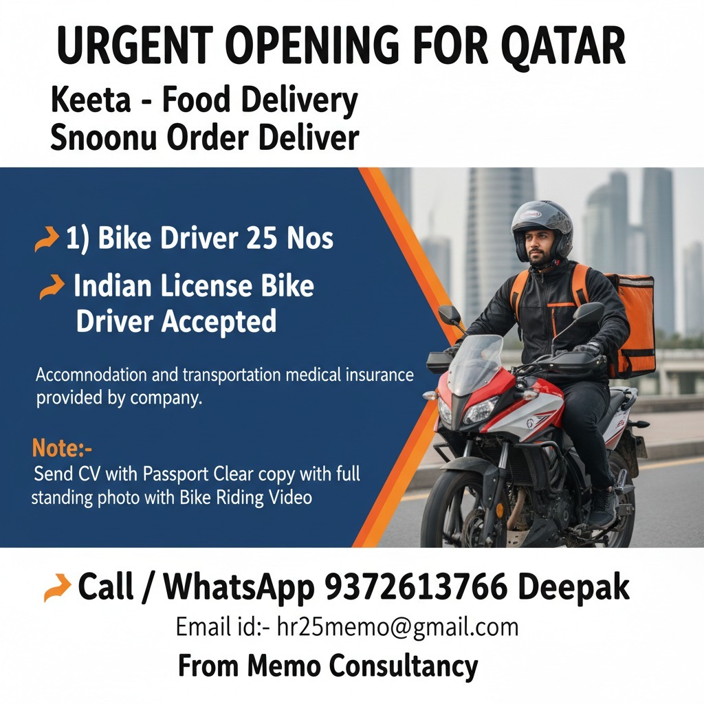 Bike delivery jobs in qatar 2025 - Urgent hiring