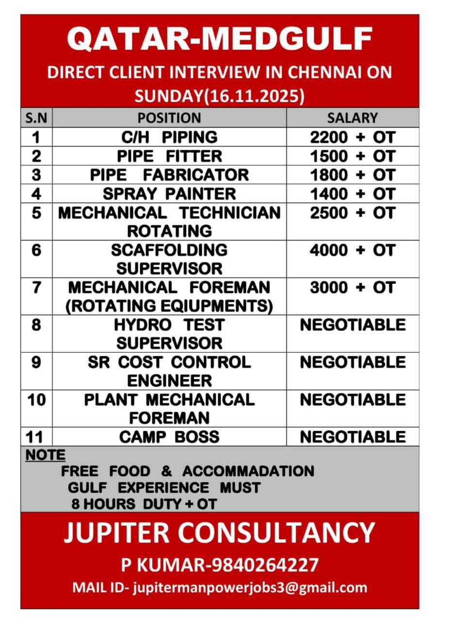 Send CV to: jupitermanpowerjobs3@gmail.com