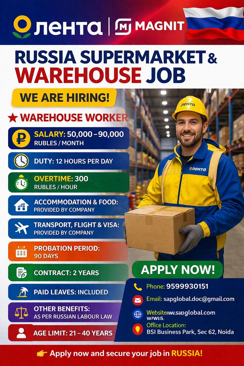 Magnit russia vacancies for supermarket & Warehouse