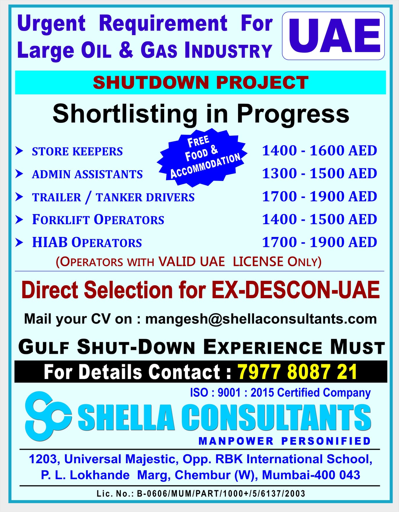 Shutdown jobs in UAE 2021 - Urgent requirement